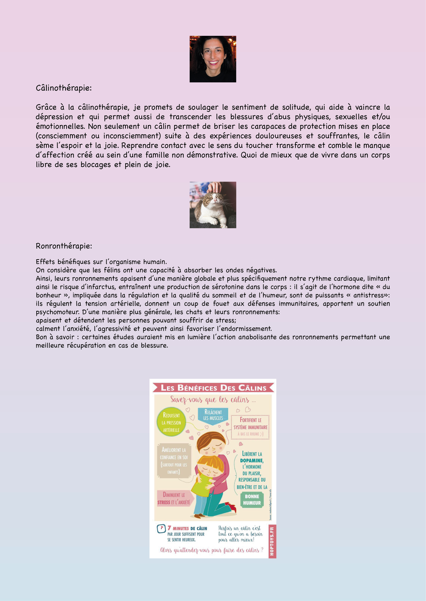 Durant toutes ses années, j'ai eu l'occasion de me familiariser avec la sophrologie active et passive, l'aromathérapie, la lithothérapie, la méditation, les fleurs de bach, la kinésiologie, la PNL, les constellations familiales, la radiesthésie, le secret, la respiration cohérente, le reiki, les chacras, le yoga, différentes danses, la communication animale, la réflexologie, le massage des mains,...